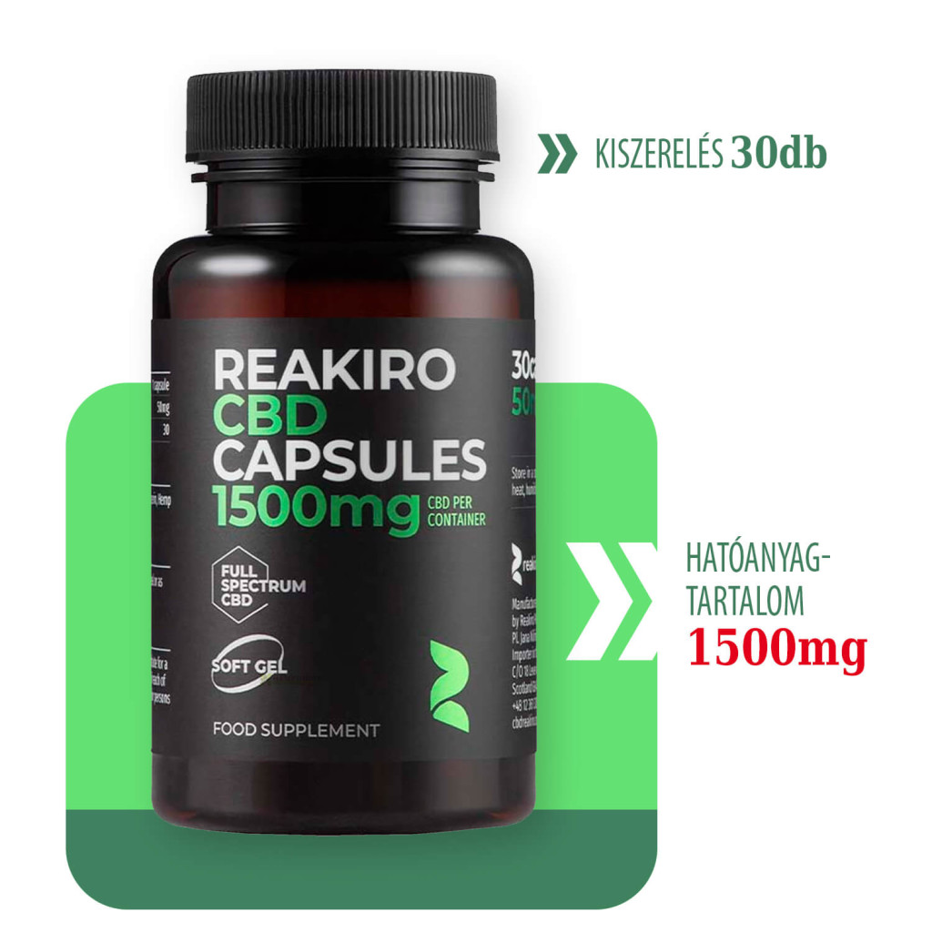Ön az 1500mg hatóanyag tartalmú 30db-os Reakiro teljes spektrumú CBD kapszula bemutatását olvassa!