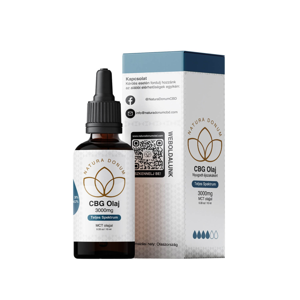 Ön az 30%-os 3000mg hatóanyag tartalmú 10ml-es Natura Donum CBG olaj részletes bemutatását olvassa!