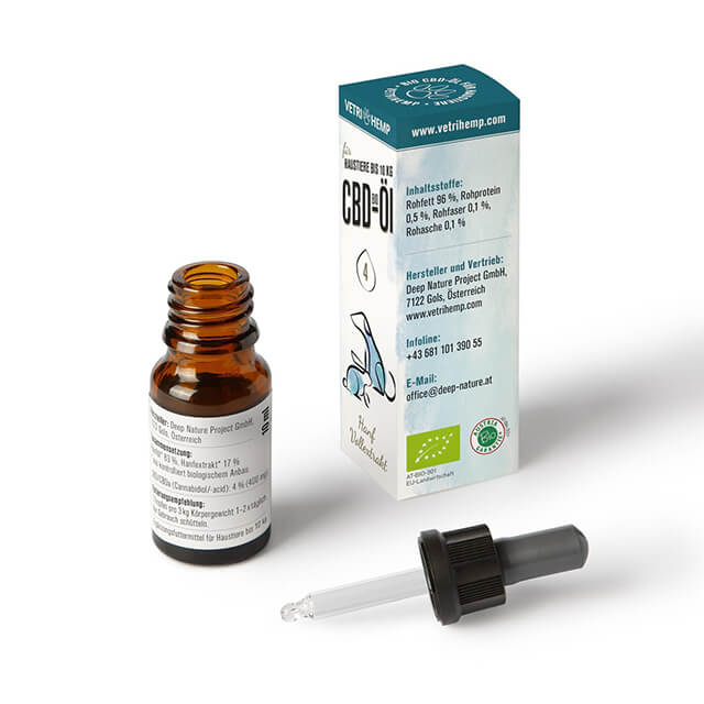 CBD olajat keres kis kedvencének? 10kg alatti kutyáknak a Vetrihemp 4%-os CBD olajat ajánljuk 400mg hatóanyaggal 10ml-es kiszerelésben!